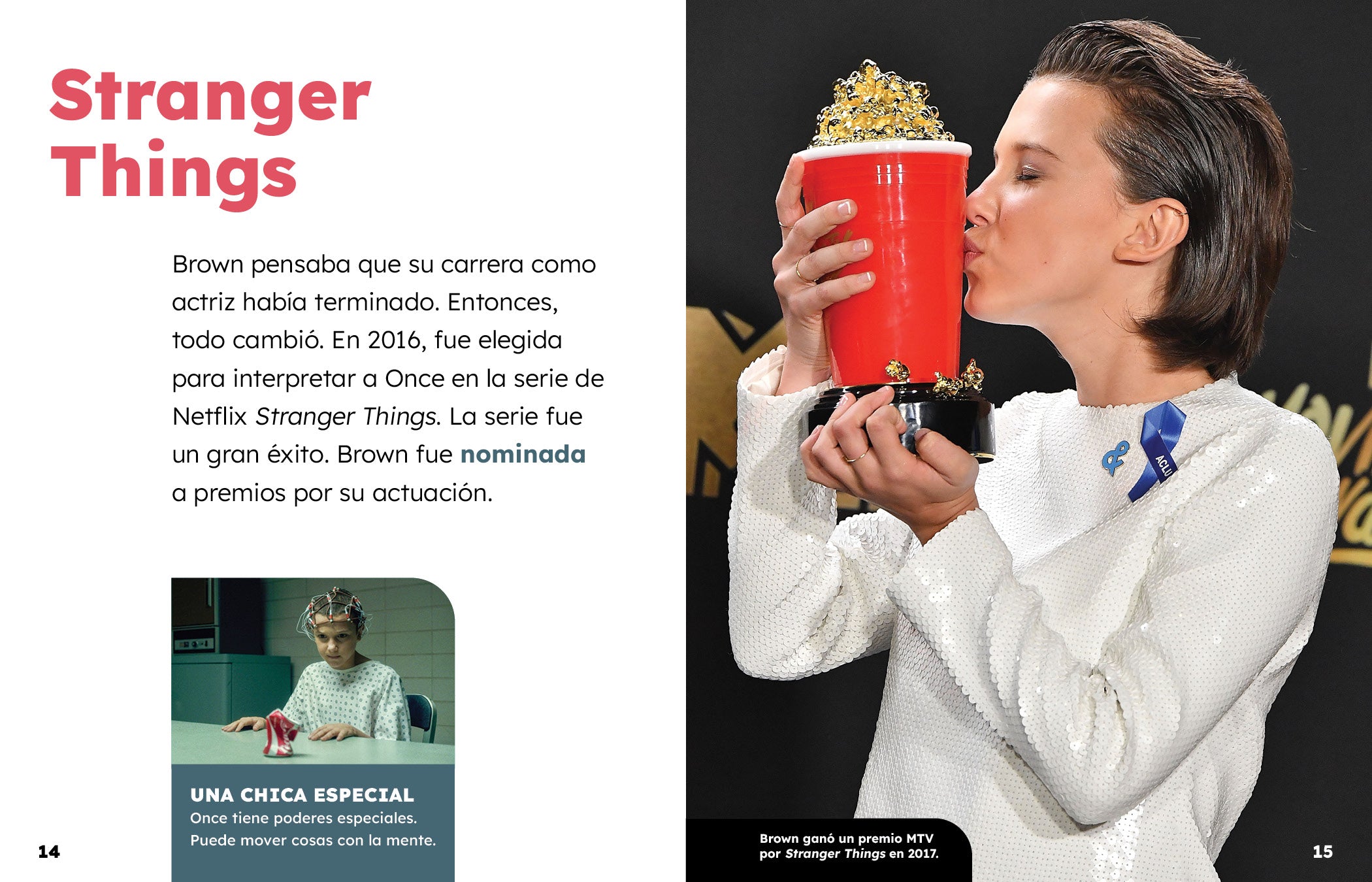 ¡Luces, cámara, acción! Aprende cómo Millie Bobby Brown se convirtió en una sensación de Hollywood, desde sus primeros desafíos en la actuación hasta protagonizar como Eleven en la exitosa serie de Netflix Stranger Things y liderar Enola Holmes. Esta biografía atractiva está llena de texto informativo adecuado para jóvenes lectores. Los fanáticos de la cultura pop en edad escolar descubrirán detalles sobre la vida temprana de Brown, su ascenso a la fama y sus emprendimientos en belleza y negocios. Este breve perfil responde a las preguntas de los niños sobre la talentosa actriz. Incluye tabla de contenido, glosario, e índice.
