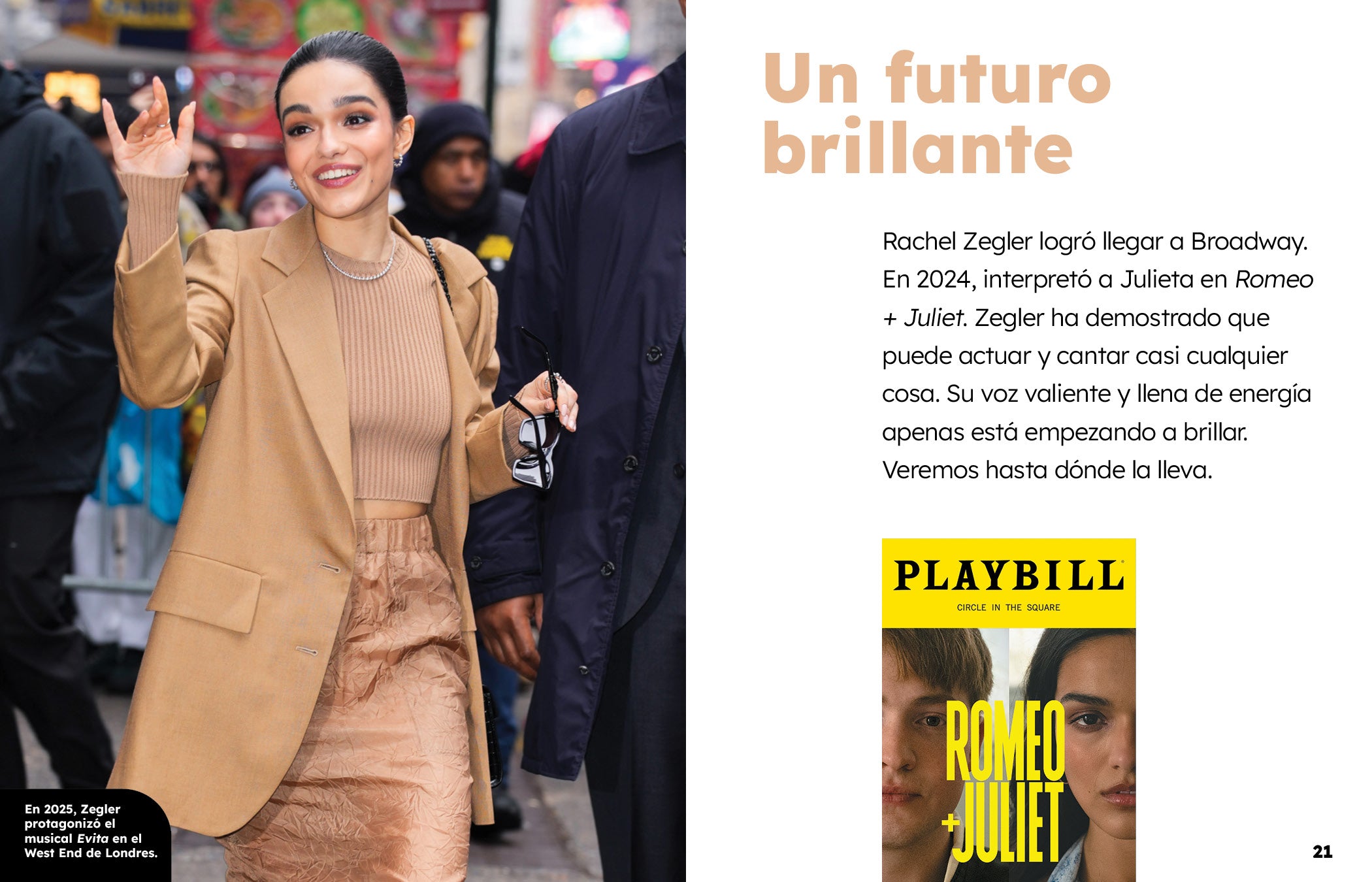 ¡De fanática del teatro musical a estrella de Hollywood! Aprende cómo Rachel Zegler pasó de actuaciones en la escuela secundaria a protagonizar como María en West Side Story, Lucy Gray en Los Juegos del Hambre: La Balada de Pájaros Cantores y Serpientes, y Blancanieves en el remake de acción en vivo de Disney. Esta biografía atractiva está llena de texto informativo adecuado para jóvenes lectores. Los fanáticos de la cultura pop en edad escolar descubrirán detalles sobre la vida temprana de Zegler, su ascenso a la fama y su pasión por usar su voz para generar cambios. Este breve perfil responde a las preguntas de los niños sobre la talentosa actriz. Incluye tabla de contenido, glosario, e índice.