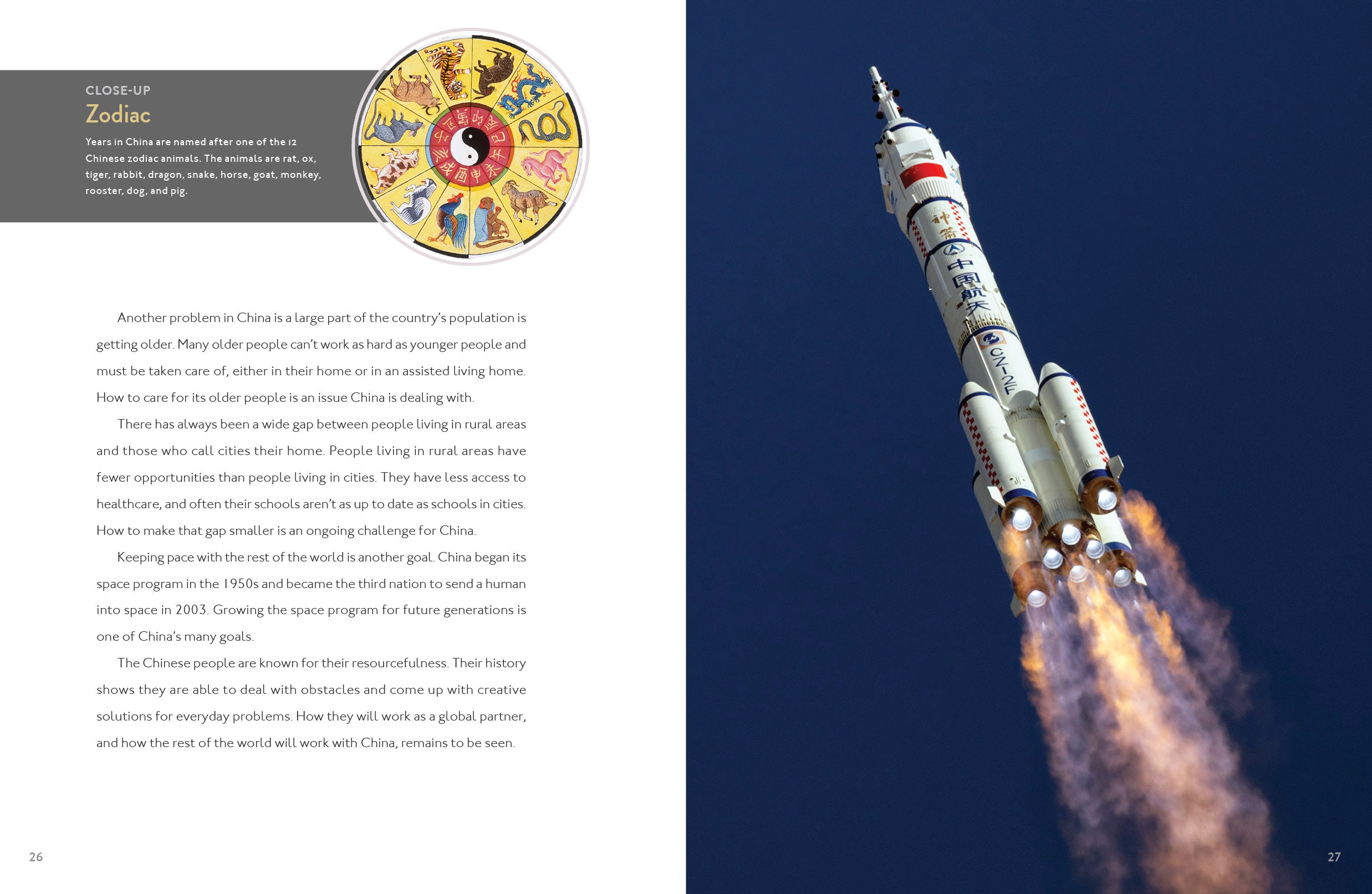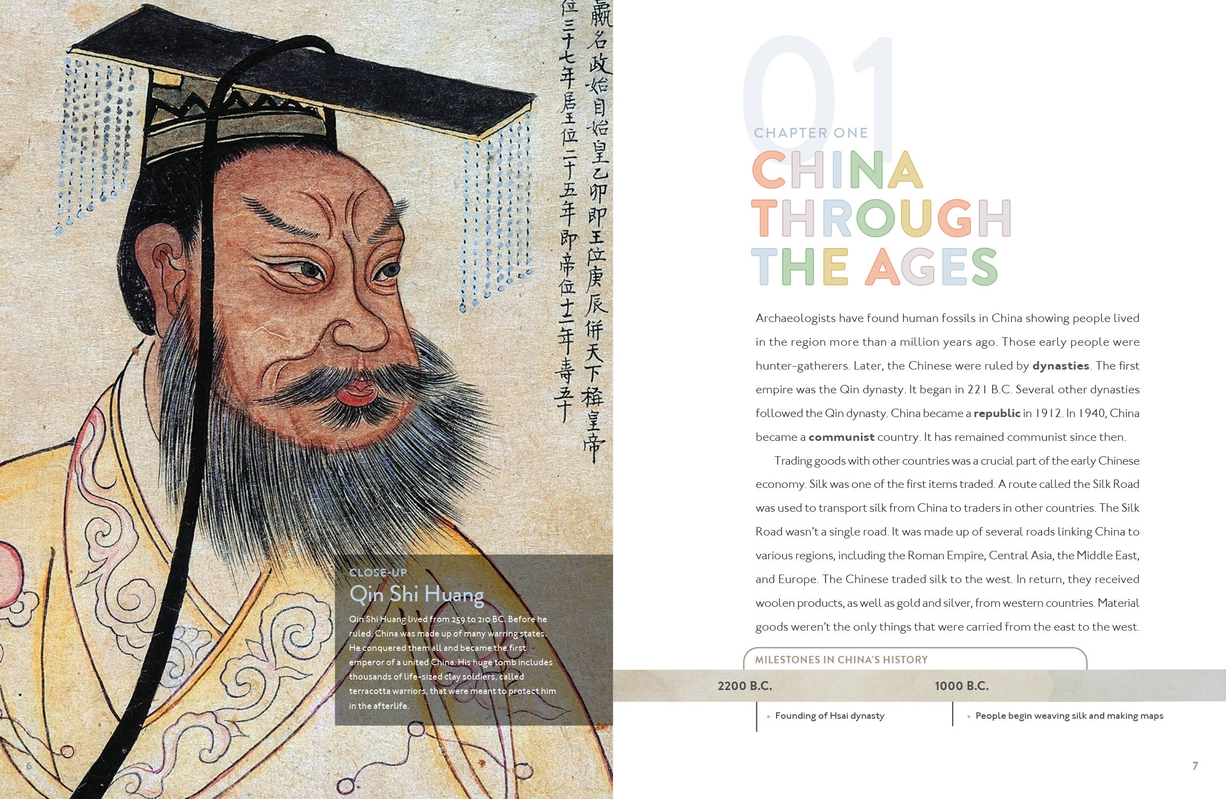 Travel to China within the pages of this book for middle-grade readers eager to explore the nation's rich history, diverse geography, and cultural heritage. While depicting China's diverse landscapes, including mountains, deserts, and plains, and its traditional practices like Feng Shui, the narrative also discusses China's ancient civilization, its economic growth, environmental challenges, and social issues such as the one-child policy. With captivating color photographs, timelines, glossary, and index, this book is perfect for research and browsing.