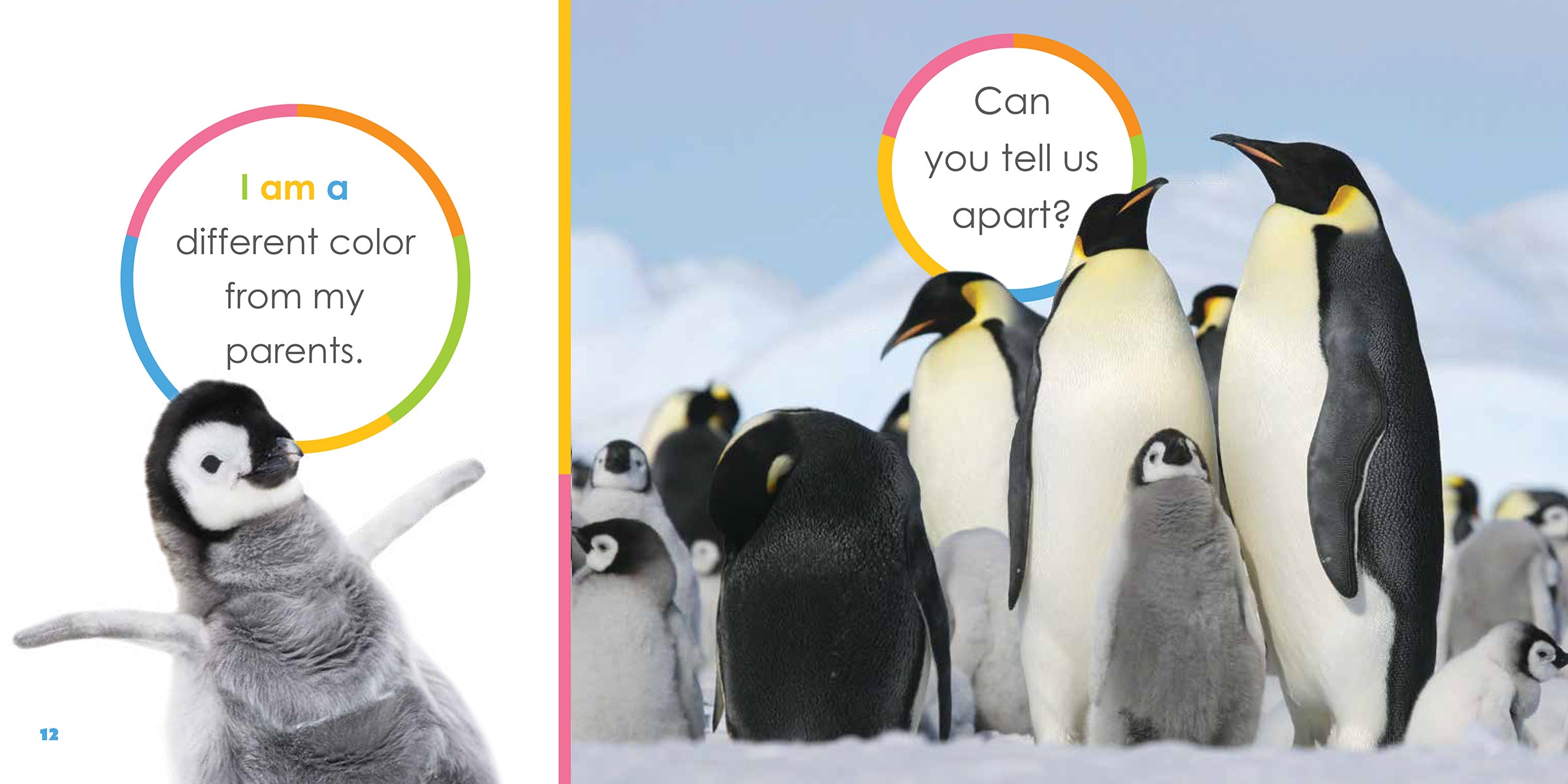 Waddle into the icy, snow-covered world of baby penguins! Follow a baby penguin as it narrates the story of its life, highlighting key moments in its growth and development. This sturdy board book is a visual delight for young readers, featuring vivid photographs that make learning about animals fun and engaging. In the "Penguin Chatter" section, kids can join in by mimicking the unique sounds of these adorable black-and-white birds.