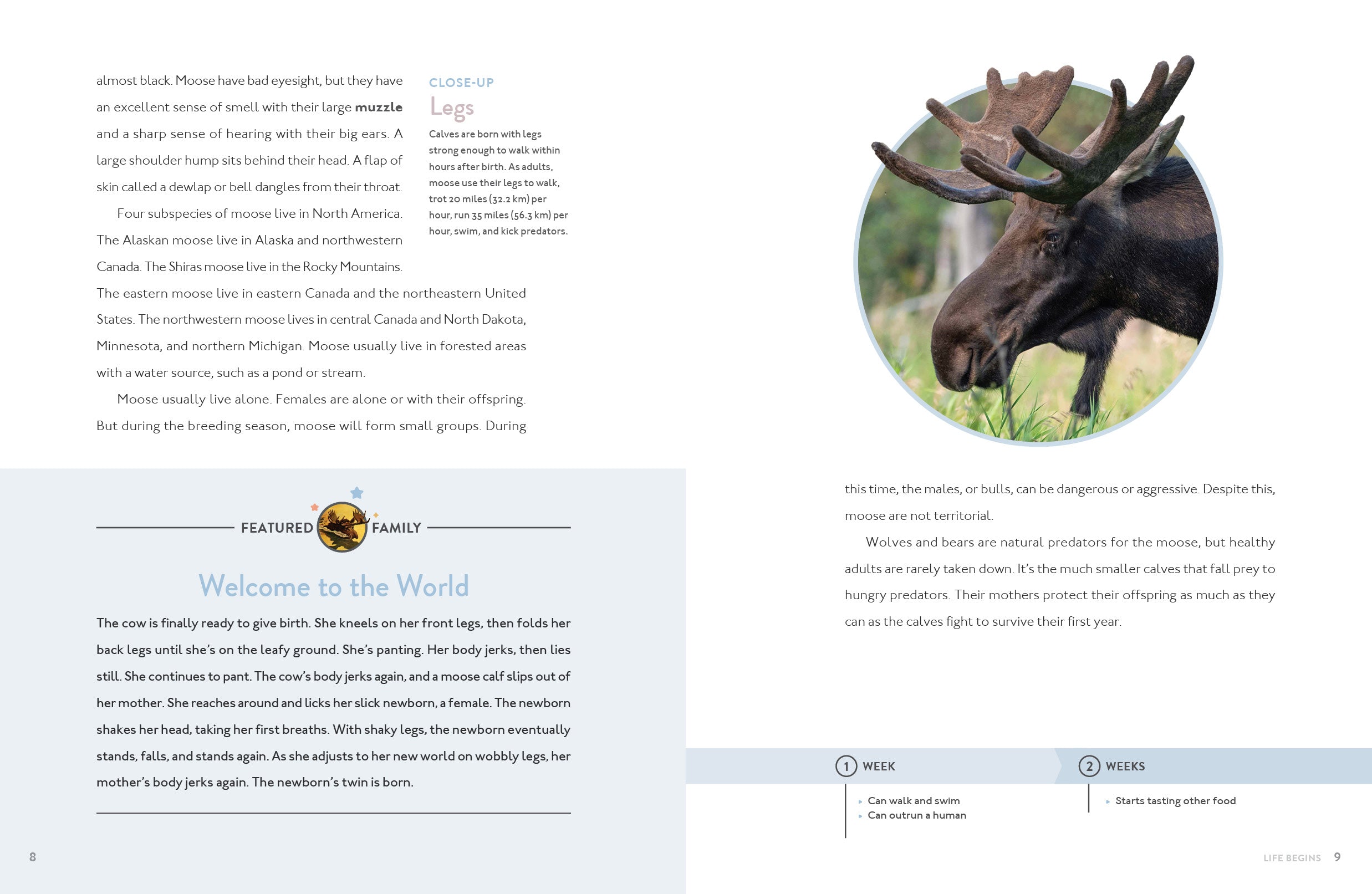 This engaging wildlife book blends storytelling with scientific detail, following a single moose family in a narrative reminiscent of classic nature shows. Readers explore moose species, habitats, and survival adaptations through stunning photography, infographics, a timeline, a glossary, and an index. Conservation topics, including habitat fragmentation and human-wildlife conflict, add depth. Designed for upper-elementary and middle-school readers, this educational resource balances fact and narrative, making it perfect for young wildlife enthusiasts eager to learn more about these majestic creatures.