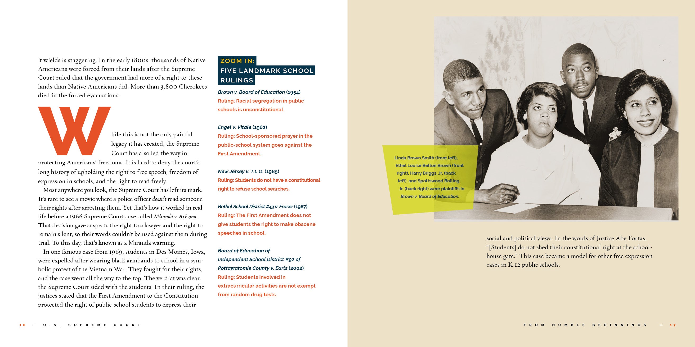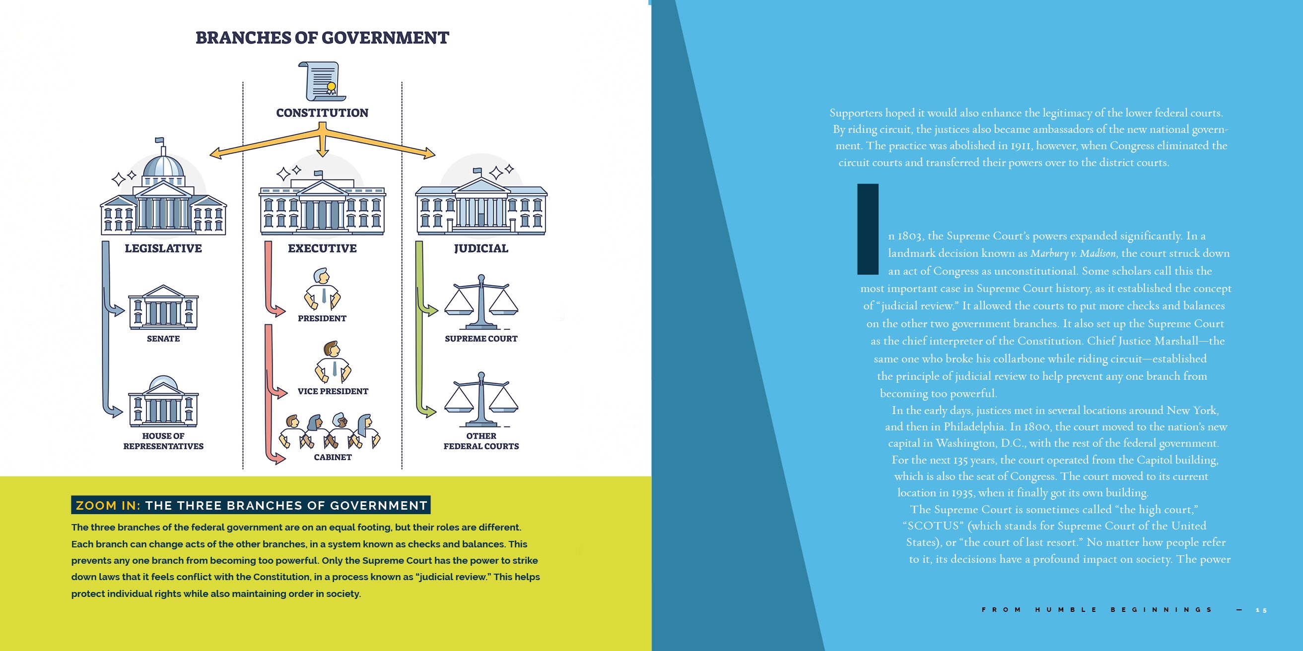 Marbury v. Madison. Dred Scott v. Sandford. Roe v. Wade. The U.S. Supreme Court’s momentous rulings have impacted the nation’s direction since the highest court’s founding. Written for middle-grade readers, this social studies title outlines the Supreme Court’s role in interpreting the Constitution and shaping U.S. laws. Learn about the inner workings of the federal judicial system, history-making Supreme Court justices, judicial controversies, and the court’s future direction. Aligns with NCSS standards for power, authority, and governance. Includes table of contents, sidebars, glossary, bibliographic references, and index.