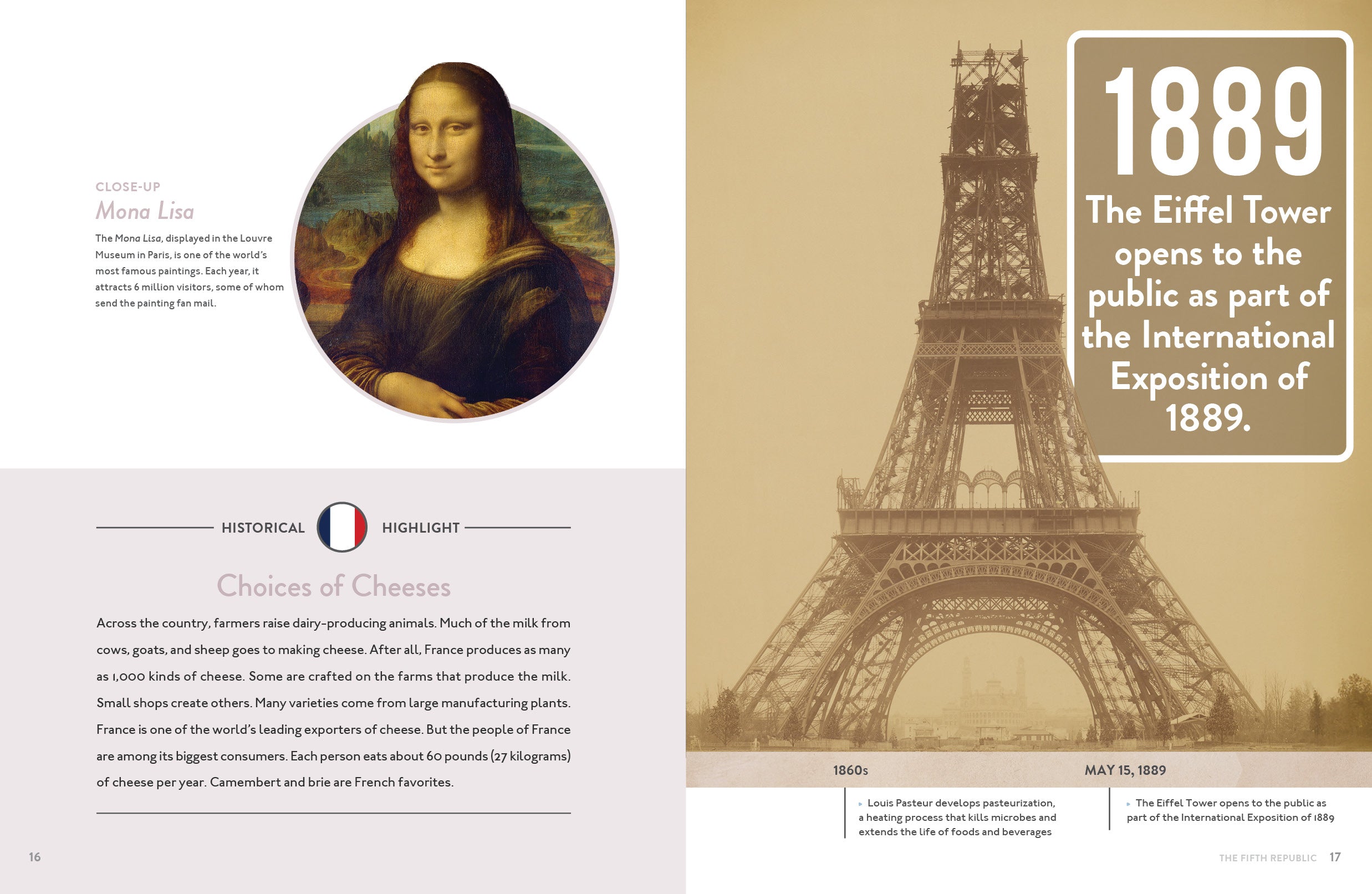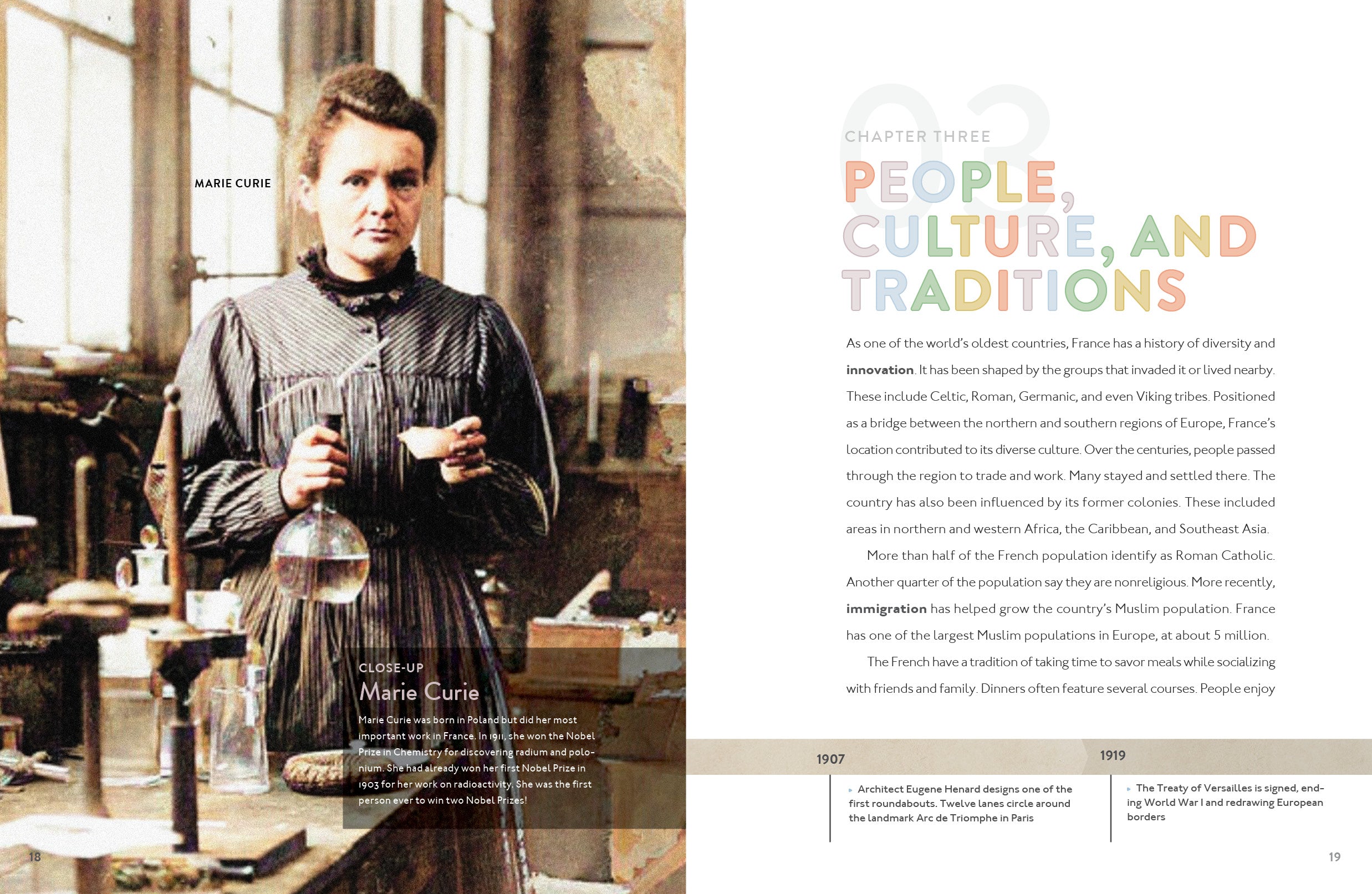 Travel to France within the pages of this book for middle-grade readers eager to explore the nation's history, culture, and significant contributions. While depicting France's iconic landmarks including the Eiffel Tower and Notre Dame, and cultural richness, including its cuisine, art, and festivals, the narrative also discusses France's transformation from ancient Gaul to the Fifth Republic, its modern political structure, economic strengths, and its role in global affairs. With captivating color photographs, timelines, glossary, and index, this book is perfect for research and browsing.