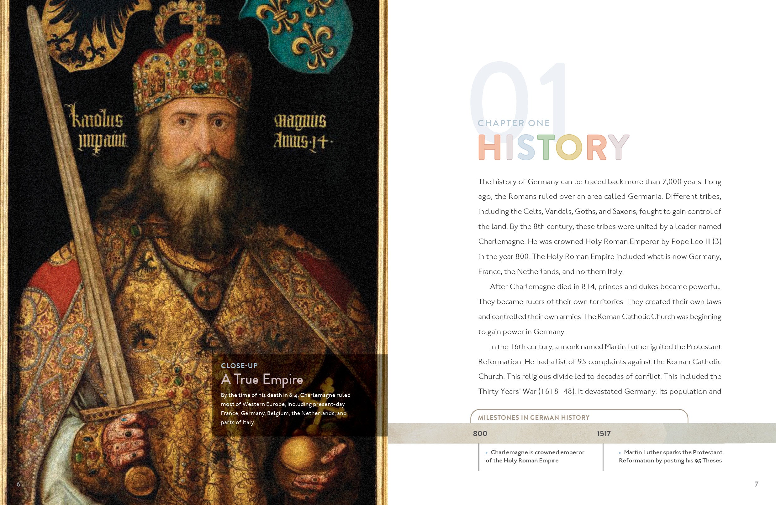 Travel to Germany within the pages of this book for middle-grade readers eager to explore the nation's strong economy, cultural contributions, and rich history marked by significant events such as the Holy Roman Empire, the Reformation, and the World Wars. While depicting Germany's diverse landscapes from the Bavarian Alps to the North Sea coast, the narrative also discusses Germany's crucial role in the European Union and global affairs. With captivating color photographs, timelines, glossary, and index, this book is perfect for research and browsing.