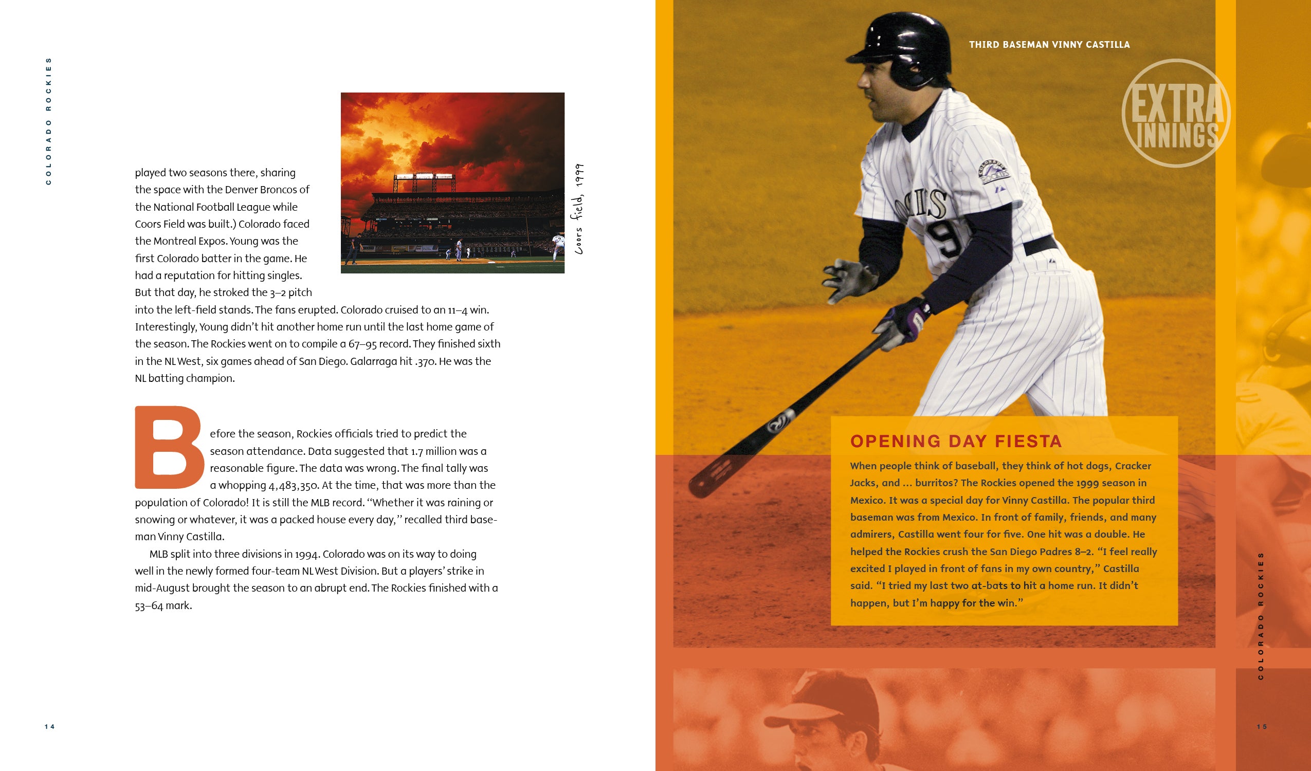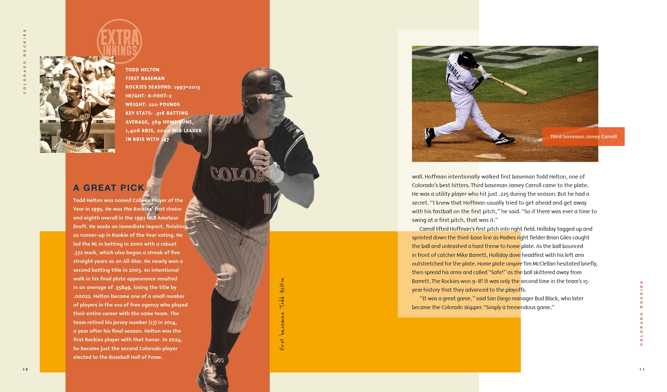 Journey with the Colorado Rockies team through their highs and lows in Major League Baseball from their formation in 1993 to current seasons, including their notable 2007 playoff run. Written for middle-grade sports fans, this book highlights memorable moments, including their first home game, playoff appearances, and individual achievements. Notable players like Todd Helton, Larry Walker, and Troy Tulowitzki are featured. Despite the challenges of playing at Coors Field and the team's recent struggles, the Rockies have maintained a resilient spirit. Includes table of contents, sidebars, and index.