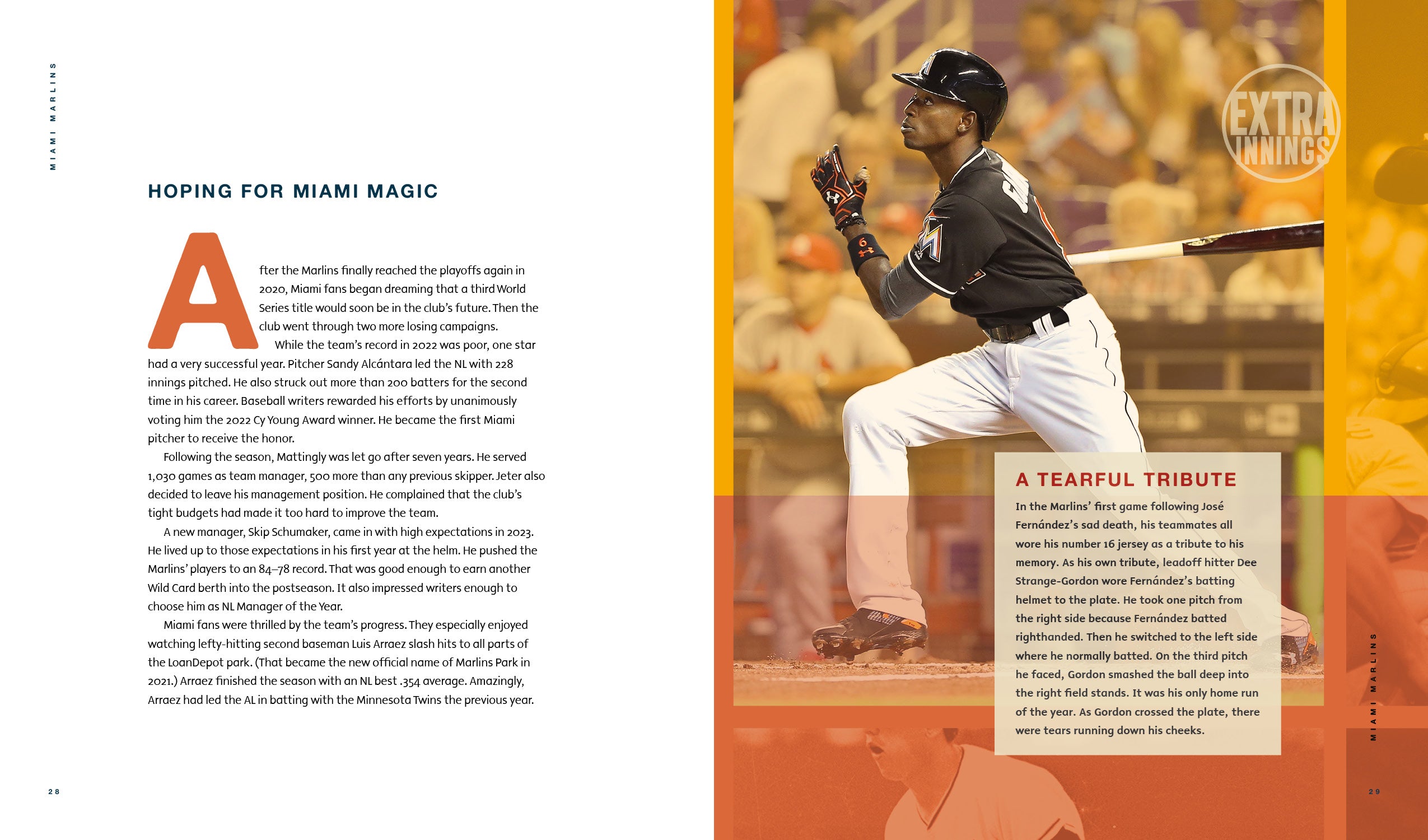 Journey with the Miami Marlins team through their highs and lows in Major League Baseball from their founding in 1993 to recent seasons. Written for middle-grade sports fans, this book highlights their unexpected World Series victories in 1997 and 2003, the "fire sale" of 1998, and the move to Marlins Park in 2012. Notable players like Miguel Cabrera, Dontrelle Willis, and Giancarlo Stanton are featured. Despite challenges and changes, the Marlins have maintained a resilient spirit, with fans hopeful for future triumphs. Includes table of contents, sidebars, and index.