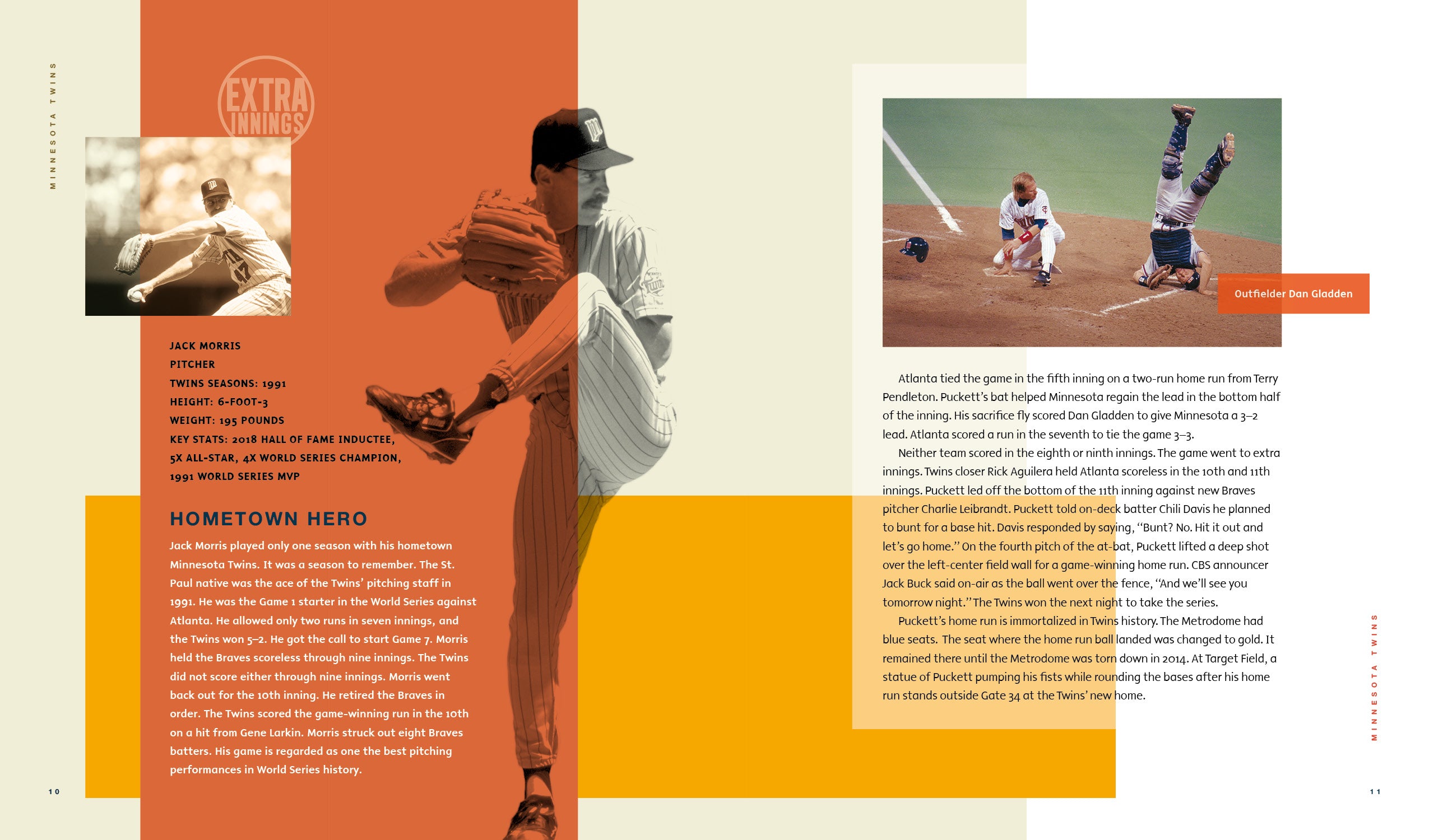 Journey with the Minnesota Twins through their highs and lows in Major League Baseball from their origins as the Washington Senators to their move to Minnesota, including recent playoff appearances. Written for middle-grade sports fans, this book highlights the 1991 "Worst to First" World Series victory, their struggles and successes in the Metrodome and Target Field, and Kirby Puckett's legendary performances. Notable players like Harmon Killebrew, Rod Carew, and Joe Mauer are featured. Despite challenges, the Twins have maintained a resilient spirit and the passionate support of their fans. Includes table of contents, sidebars, and index.