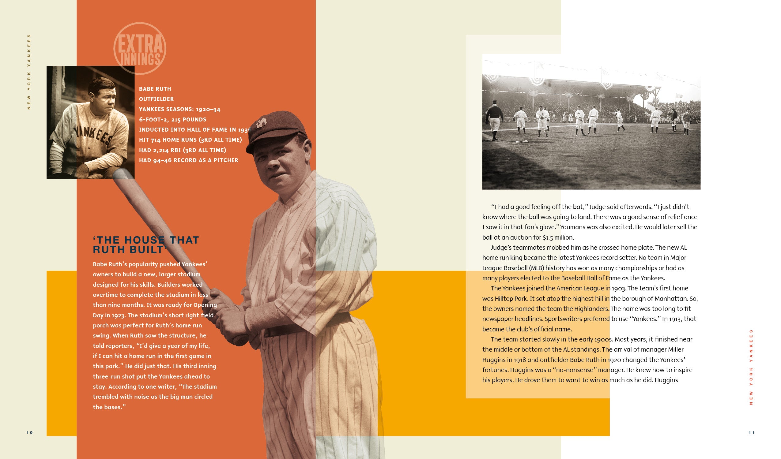 Journey with the New York Yankees team through their highs and lows in Major League Baseball from their early days as the Highlanders to their recent seasons. Written for middle-grade sports fans, this book highlights numerous World Series victories, the Yankees' resurgence under George Steinbrenner, and the 1990s dynasty led by Derek Jeter. Notable players like Babe Ruth, Lou Gehrig, Joe DiMaggio, and Aaron Judge are featured. The narrative emphasizes the Yankees' unparalleled success and the passionate support of their fans. Includes table of contents, sidebars, and index.