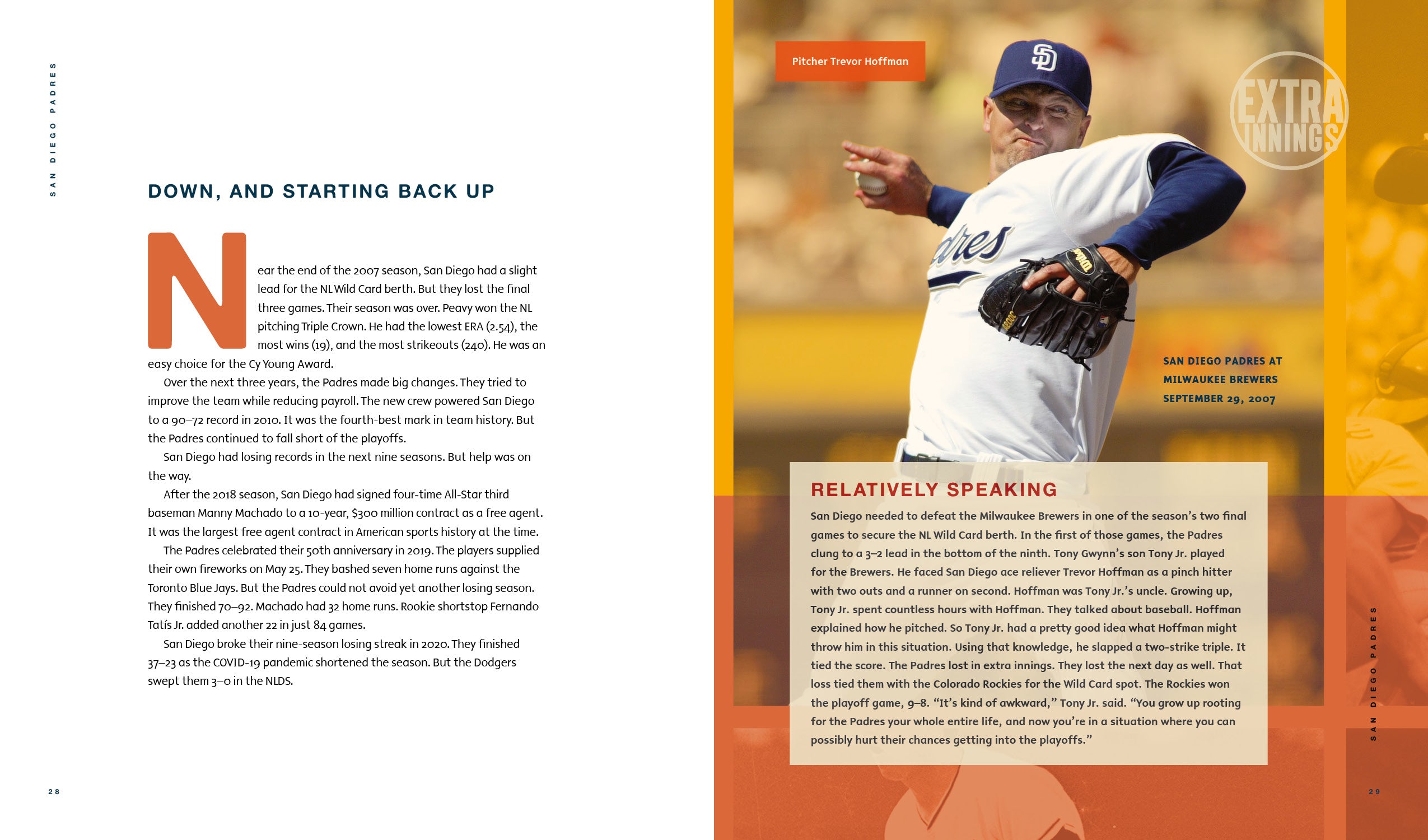 Journey with the San Diego Padres team through their highs and lows in Major League Baseball from their inception in 1969 to recent seasons. Written for middle-grade sports fans, this book highlights their first playoff appearance in 1984, the 1998 World Series run, and the record-breaking grand slams in 2020. Notable players like Tony Gwynn, Trevor Hoffman, and Fernando Tatis Jr. are featured. The Padres' journey is marked by resilience, star power, and a dedicated fan base, with recent improvements and playoff appearances offering hope for future success. Includes table of contents, sidebars, and index.