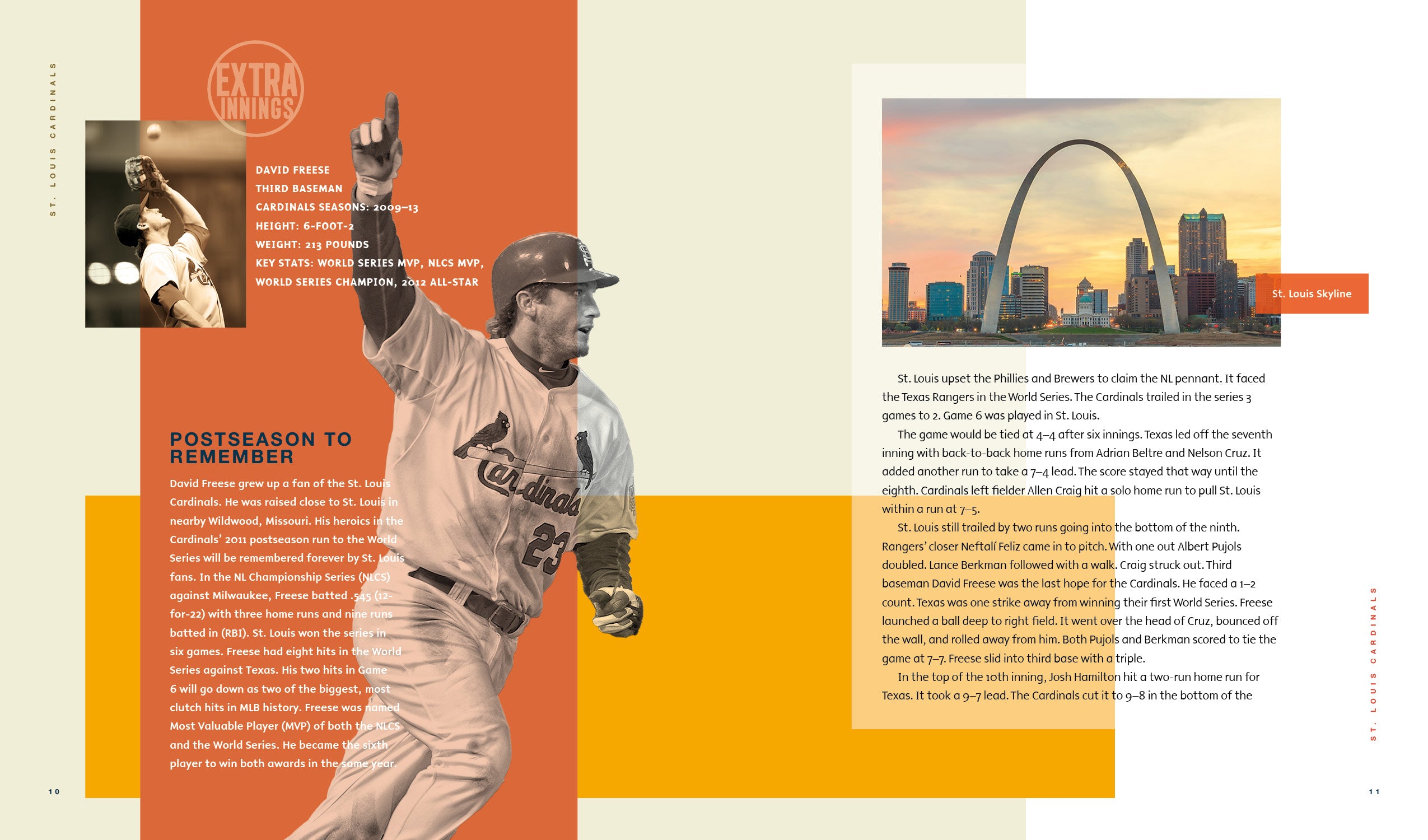 Journey with the St. Louis Cardinals team through their highs and lows in Major League Baseball from their early days as the Brown Stockings to the modern era. Written for middle-grade sports fans, this book highlights the "Gashouse Gang" of the 1930s and the team's 11 World Series titles and consistent contention. Notable players like Stan Musial, Bob Gibson, and Albert Pujols are featured. Through ups and downs, the Cardinals persevere with the support of their dedicated fans. Includes table of contents, sidebars, and index.