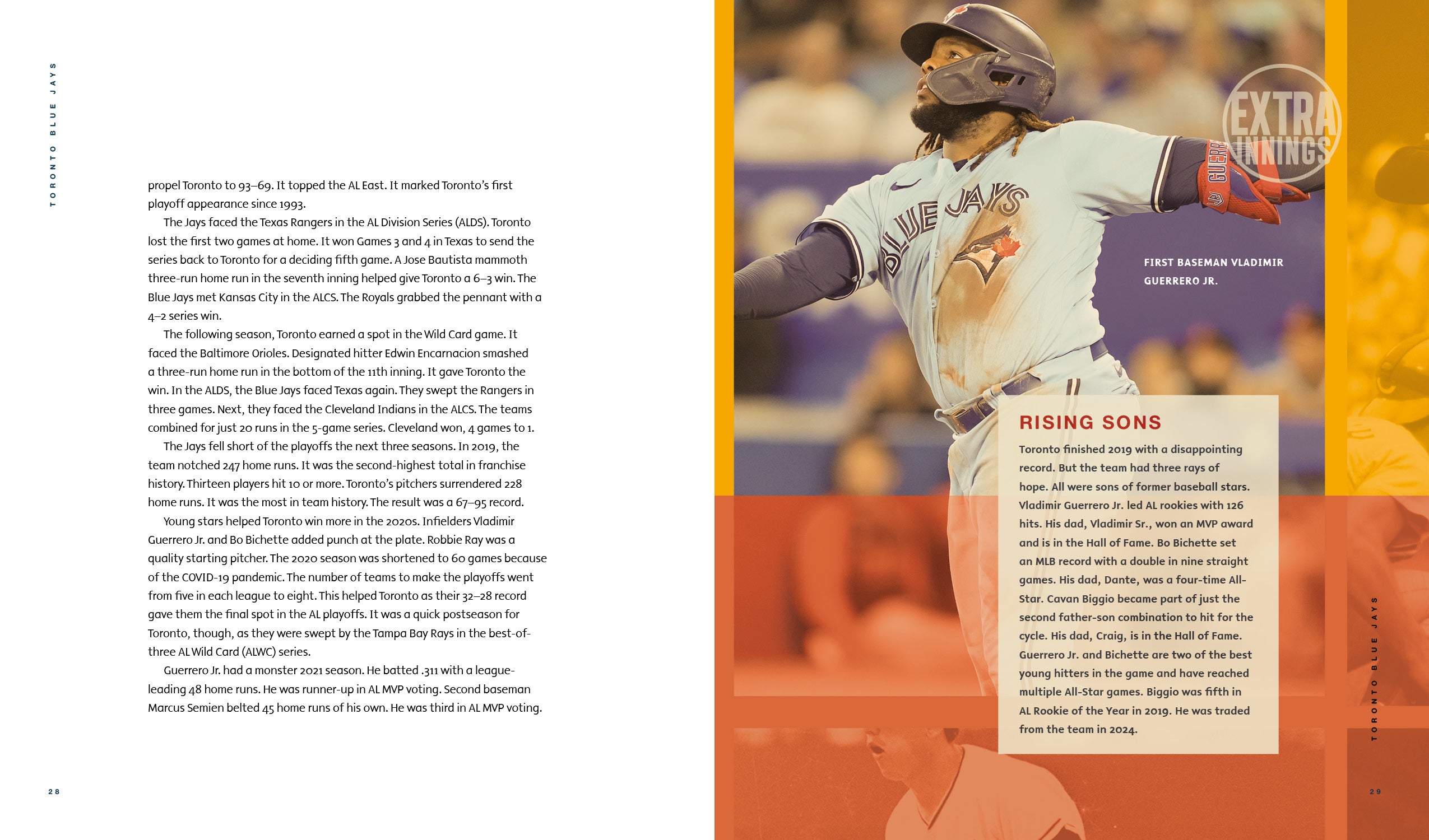 Journey with the Toronto Blue Jays team through their highs and lows in Major League Baseball from its inception in 1977 to recent seasons. Written for middle-grade sports fans, this book highlights Dave Stieb's elusive no-hitter, the back-to-back World Series championships in 1992 and 1993, and the contributions of stars like Carlos Delgado and Roy Halladay. The narrative covers the team's early struggles, periods of success, and postseason droughts, emphasizing resilience and the support of dedicated fans. Includes table of contents, sidebars, and index.