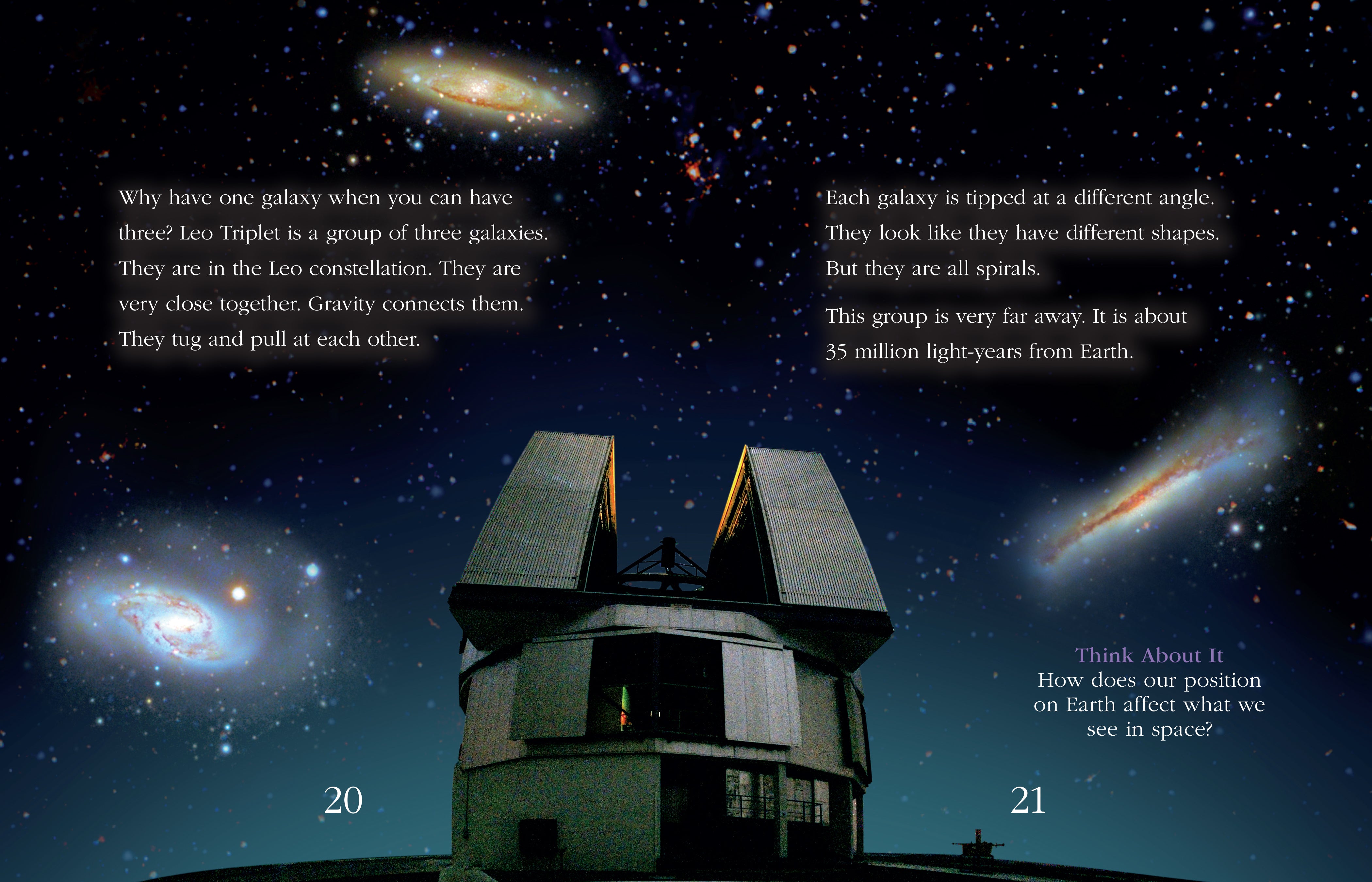The intriguing layout design features stunning images, fascinating facts, “Think About It” prompts, and a galaxy map. Includes a table of contents, glossary, index, and extra book resources.