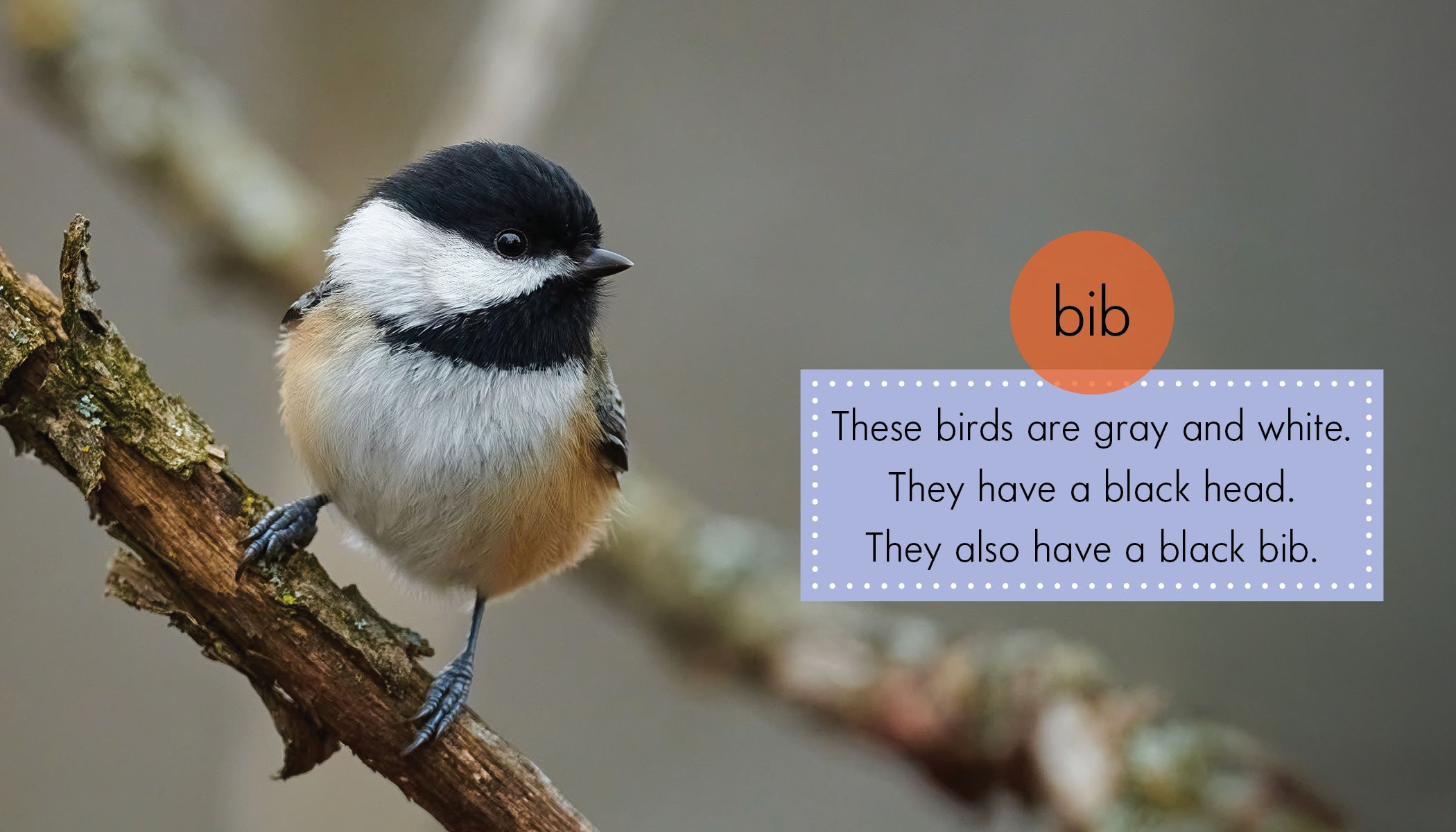Chirp! Chirp! Chickadees are small black and white birds found in trees across North America. There are many types of chickadees. The black-capped chickadee is the most common. A fast-paced introduction to backyard birds, this beginning reader highlights facts about chickadees while reinforcing key vocabulary with a search-and-find feature. Carefully controlled text and excellent photos will have early readers flipping through the pages. Picture prompts and an answer key provide visual support, making this the perfect book to teach kindergarten readers about chickadees.