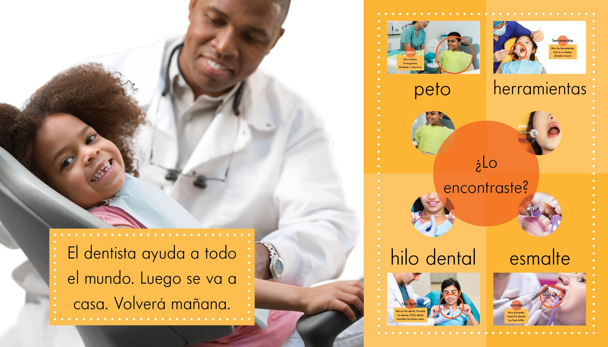 ¡Vamos a limpiar nuestros dientes! ¿Qué veremos en el consultorio del dentista? Desde el vestíbulo hasta las herramientas y el pulido que usa el dentista, los lectores en desarrollo aprenderán lo que podrían ver en una cita en este libro de nivel inicial. Una función de búsqueda y encuentro refuerza el nuevo vocabulario para construir el éxito en la lectura, mientras que las imágenes coloridas y cercanas cautivan a las audiencias jóvenes. Un excelente libro de estudios sociales tempranos para inspirar el aprendizaje sobre las comunidades en excursiones para niños de jardín de infantes y primer grado.
