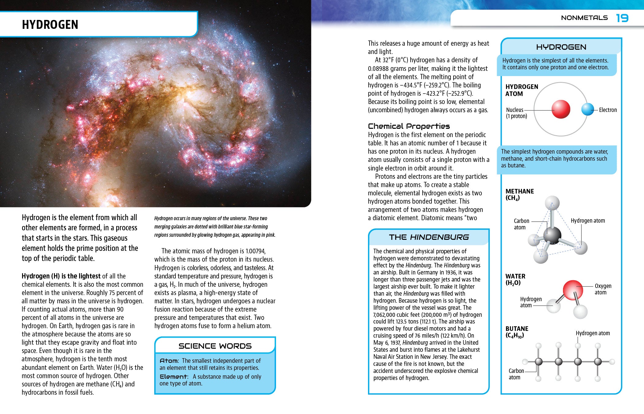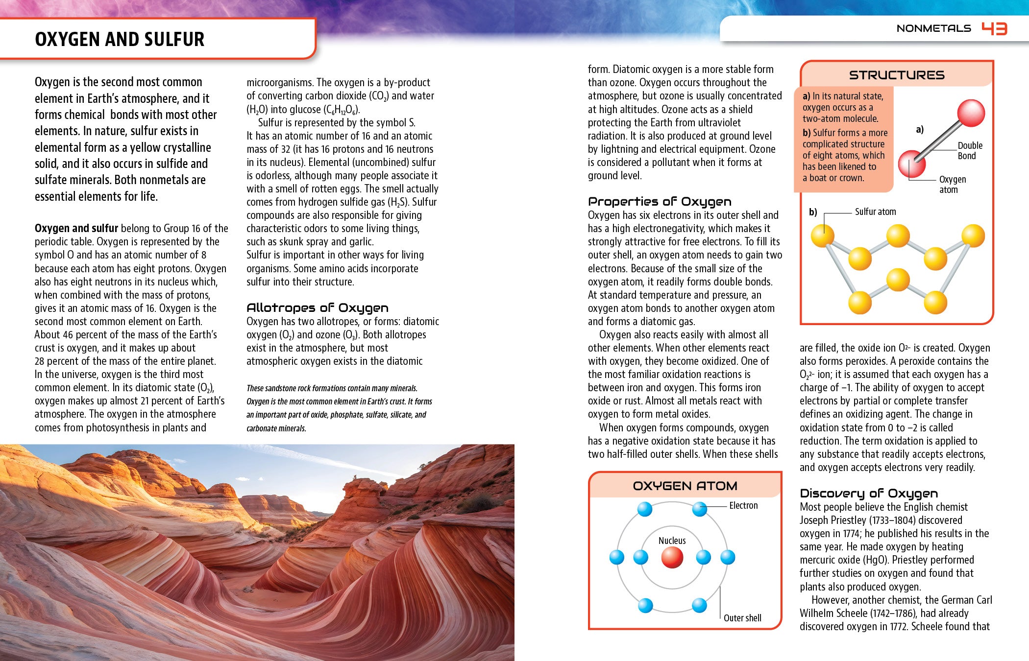 Although there are far fewer nonmetal elements than metal elements, the nonmetals far outweigh metals in terms of abundance on Earth. This book looks at nonmetal elements from hydrogen (the lightest element) to the noble gases. It provides detailed descriptions of atomic structure, reactivity, discovery, sources, and uses for each element or group of nonmetal elements.