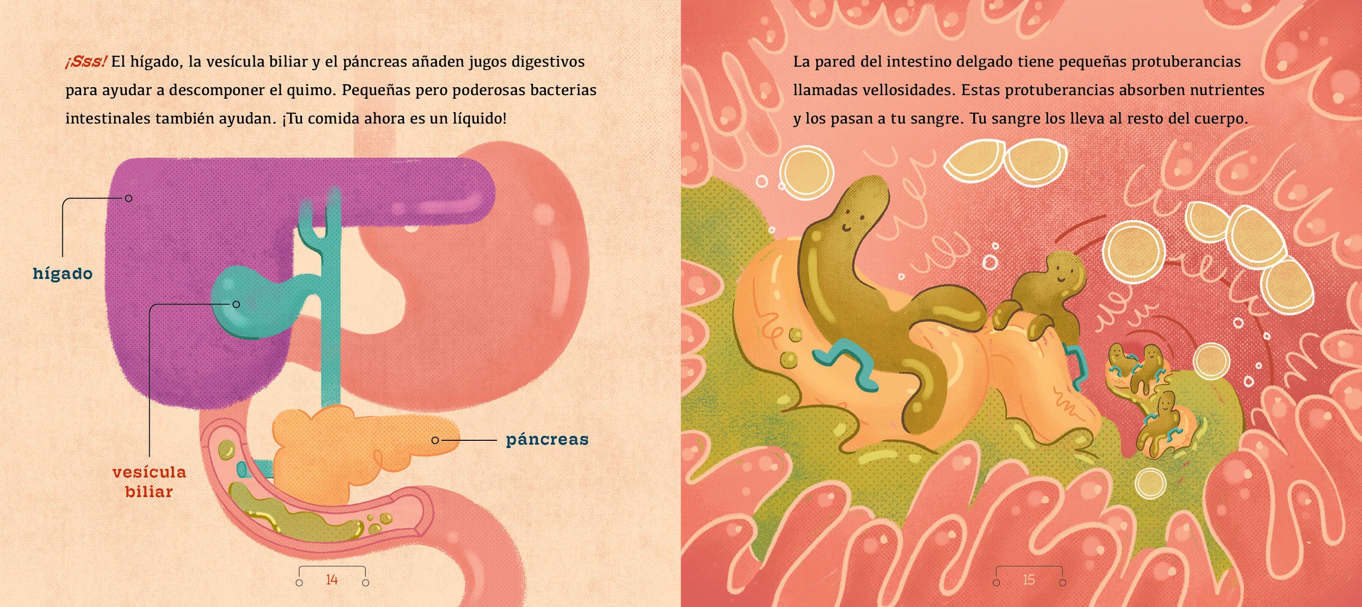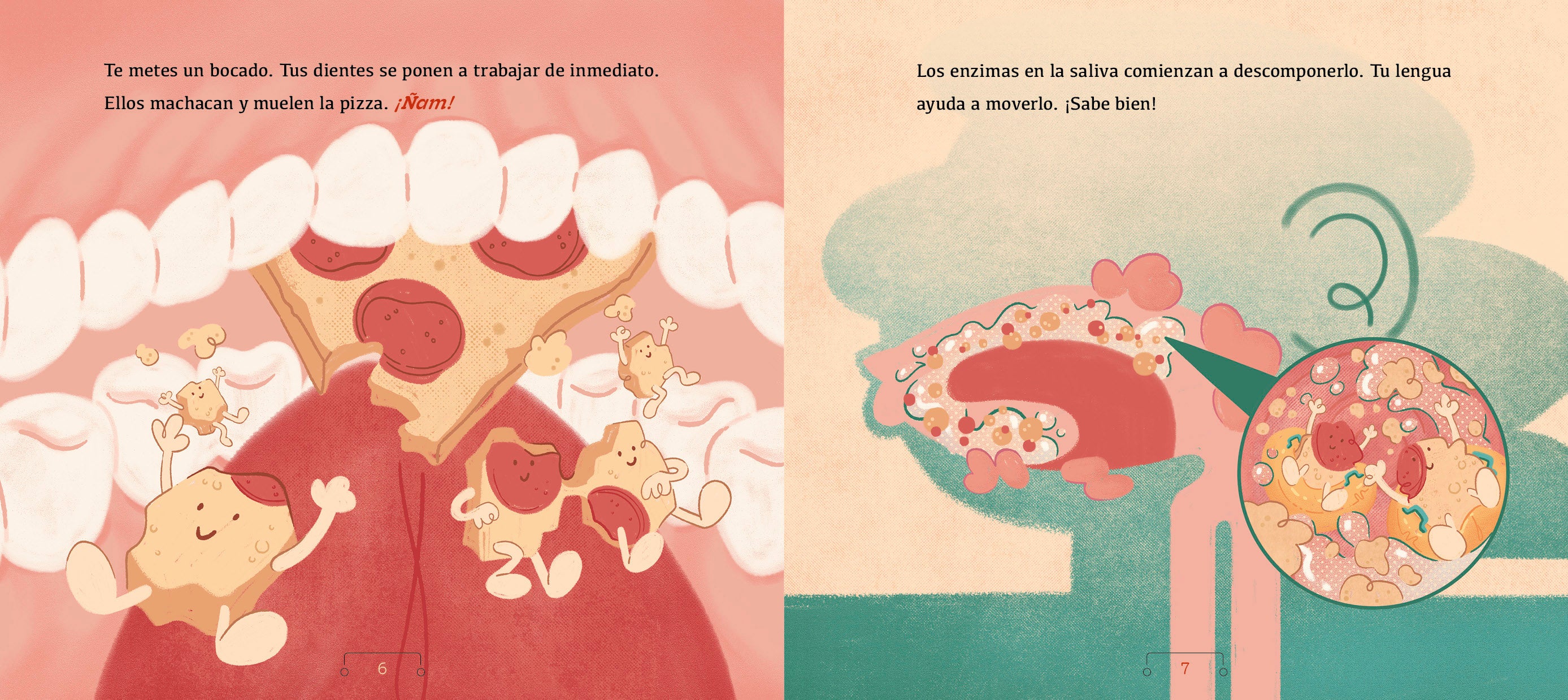 Únete a un recorrido por el sistema digestivo, comenzando con un bocado de pizza y terminando con la eliminación de desechos del cuerpo. Aprende cómo los alimentos se descomponen en nutrientes por varios órganos, incluyendo el estómago, el intestino delgado y el intestino grueso en este libro de no ficción narrativo ilustrado para lectores de edad escolar primaria. Descubre los roles de las enzimas, la saliva y las bacterias intestinales en la digestión. Incluye consejos para mantener tu sistema digestivo saludable y un glosario de términos importantes. Personajes caprichosos combinados con diagramas informativos ayudarán a los niños a entender la ciencia del cuerpo humano.